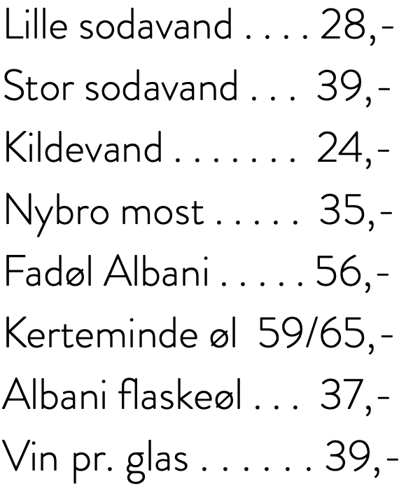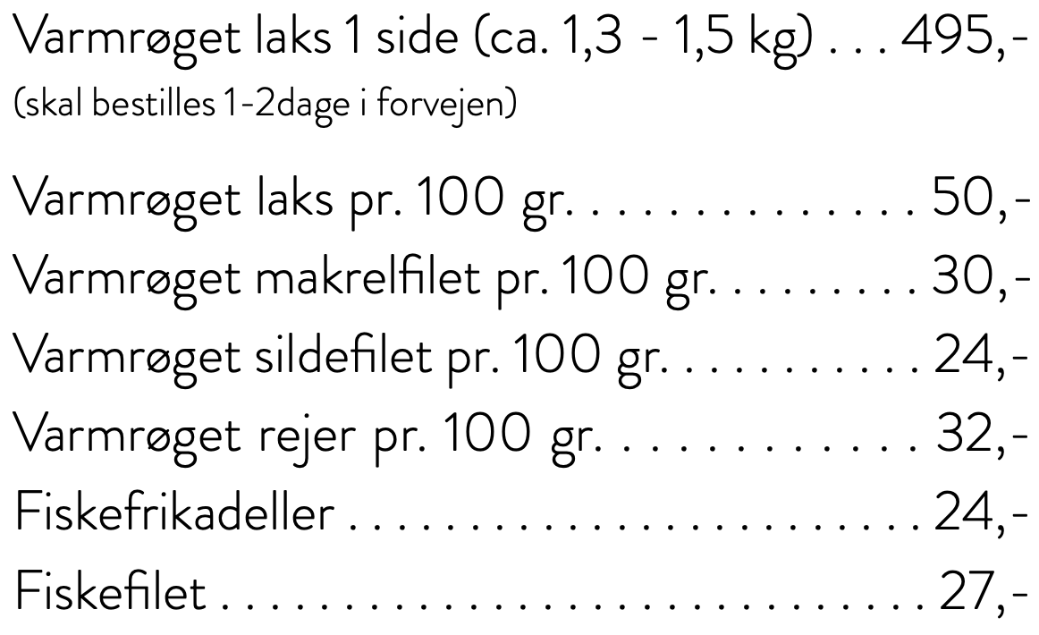 Menukort Find vores allergeneliste her Følgende retter kan man spise her eller få som takeaway Følgende fisk kan kun købes som takeaway Drikkevarer